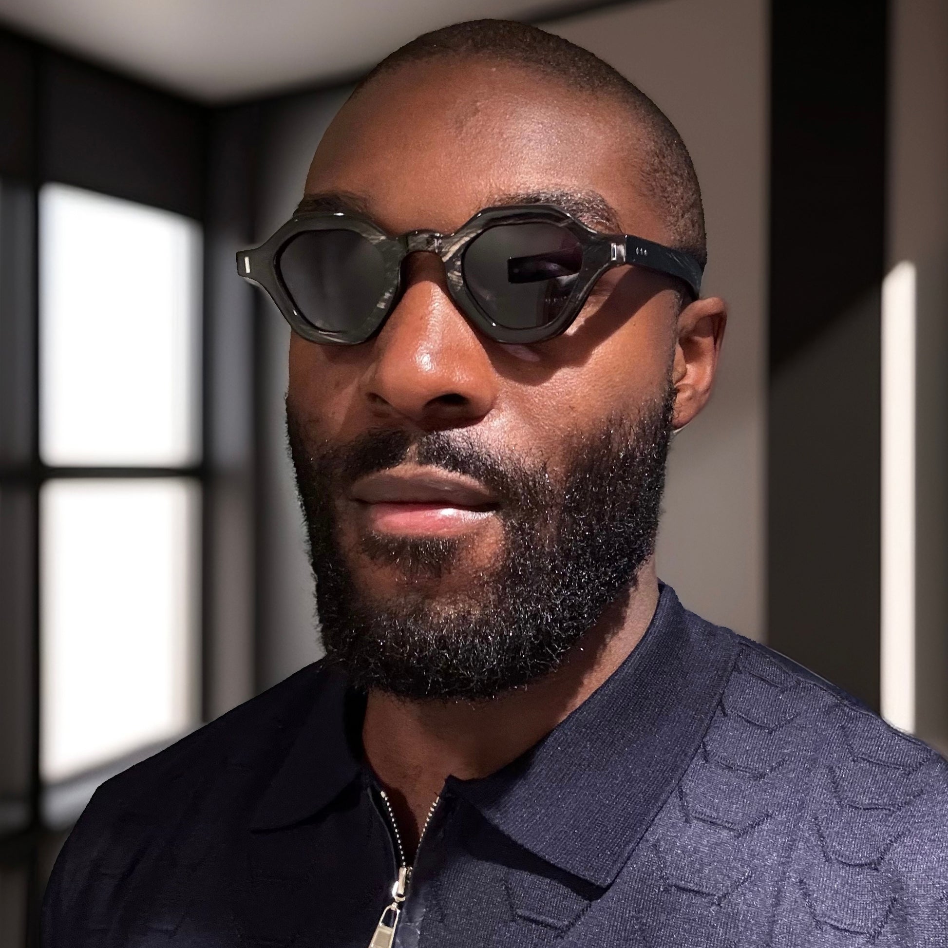 • Monture en corne naturelle sélectionnée — alternance de nuances sombres et claires, marbrées à la main
