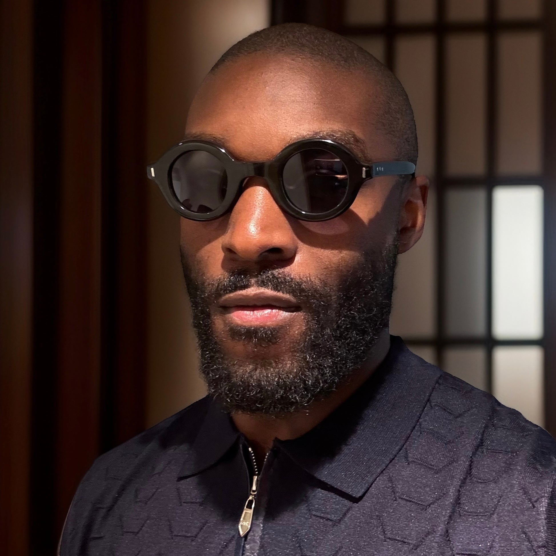 • Monture en corne naturelle sélectionnée — alternance de nuances sombres et claires, marbrées à la main