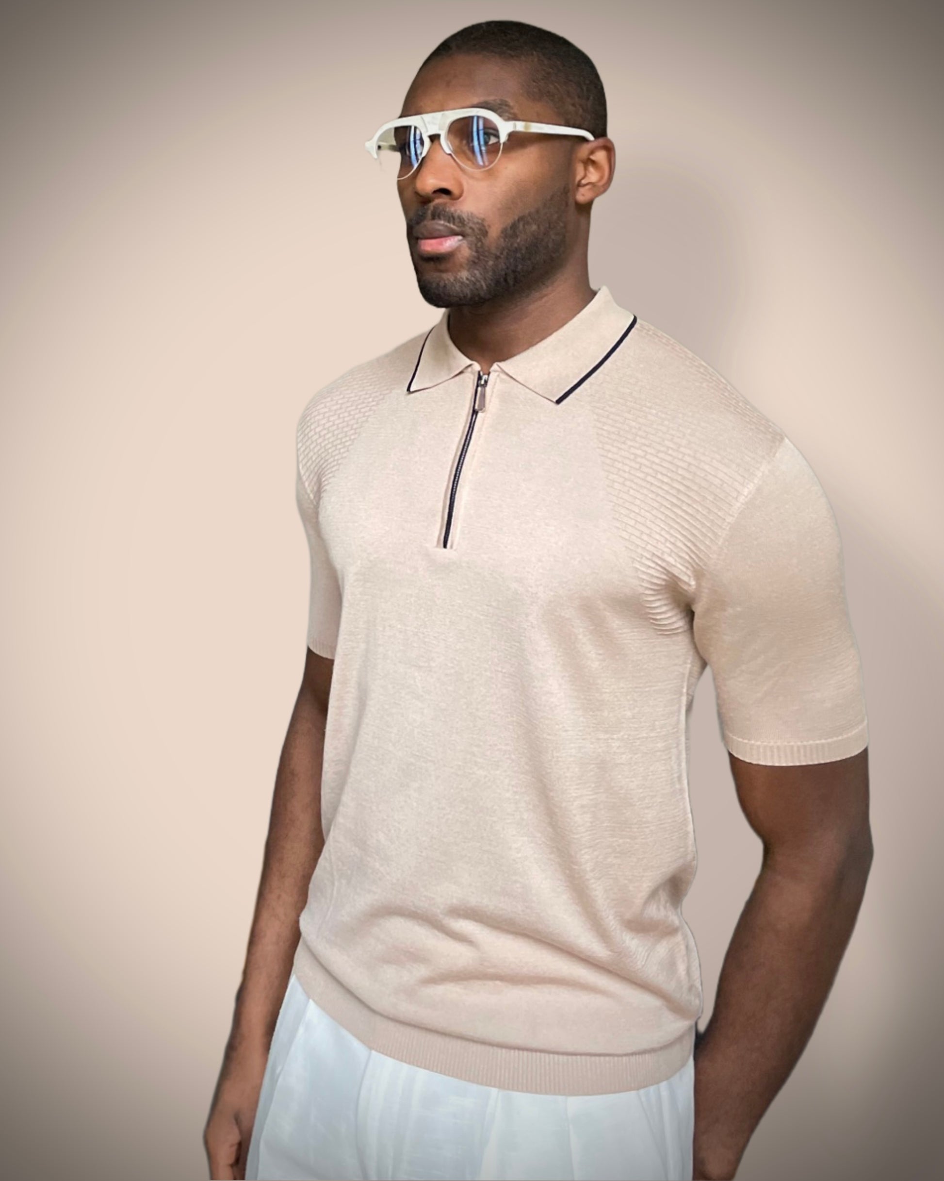 Le polo CORAÏÏ en beige perle est une pièce d’élégance minimaliste. Sa coupe épurée et son col zippé en font un essentiel à la fois sobre et sophistiqué.