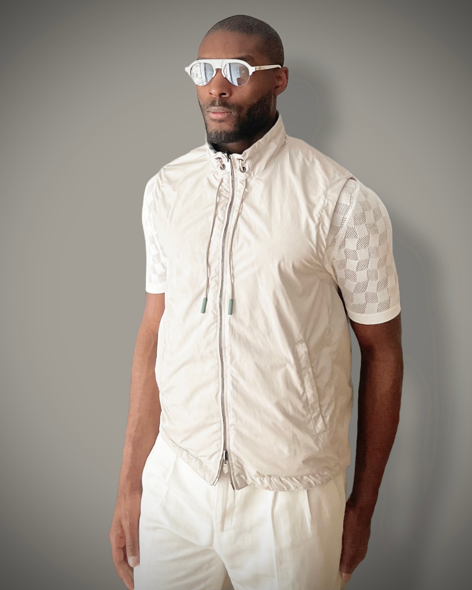 Le gilet réversible " Éclipse " incarne l’union parfaite entre innovation textile et raffinement contemporain. D’un côté, une face beige claire en nylon technique italien légèrement satiné, résistante au vent et à la pluie fine, offrant une allure urbaine et maîtrisée ; de l’autre, un jersey gris en coton égyptien au toucher doux et structuré. Deux esprits, un seul vêtement : une pièce modulable, pensée pour l’homme moderne en mouvement.